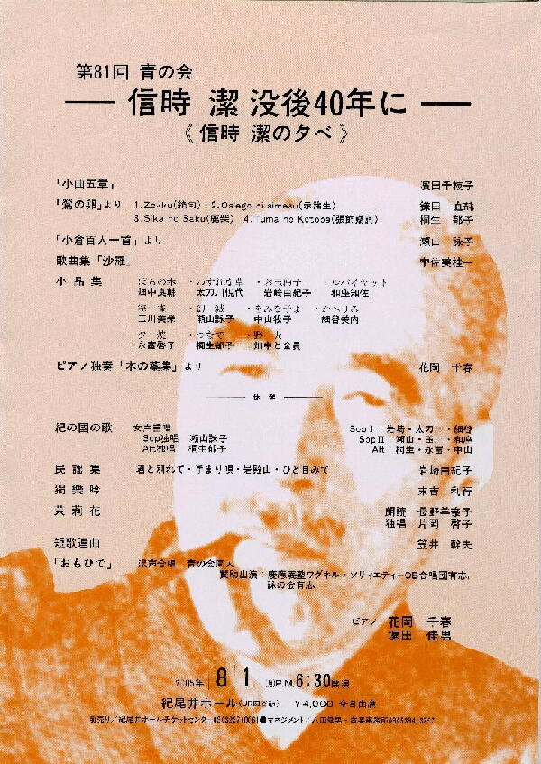 信時潔没後40年に 《信時潔の夕べ》 第81回青の会